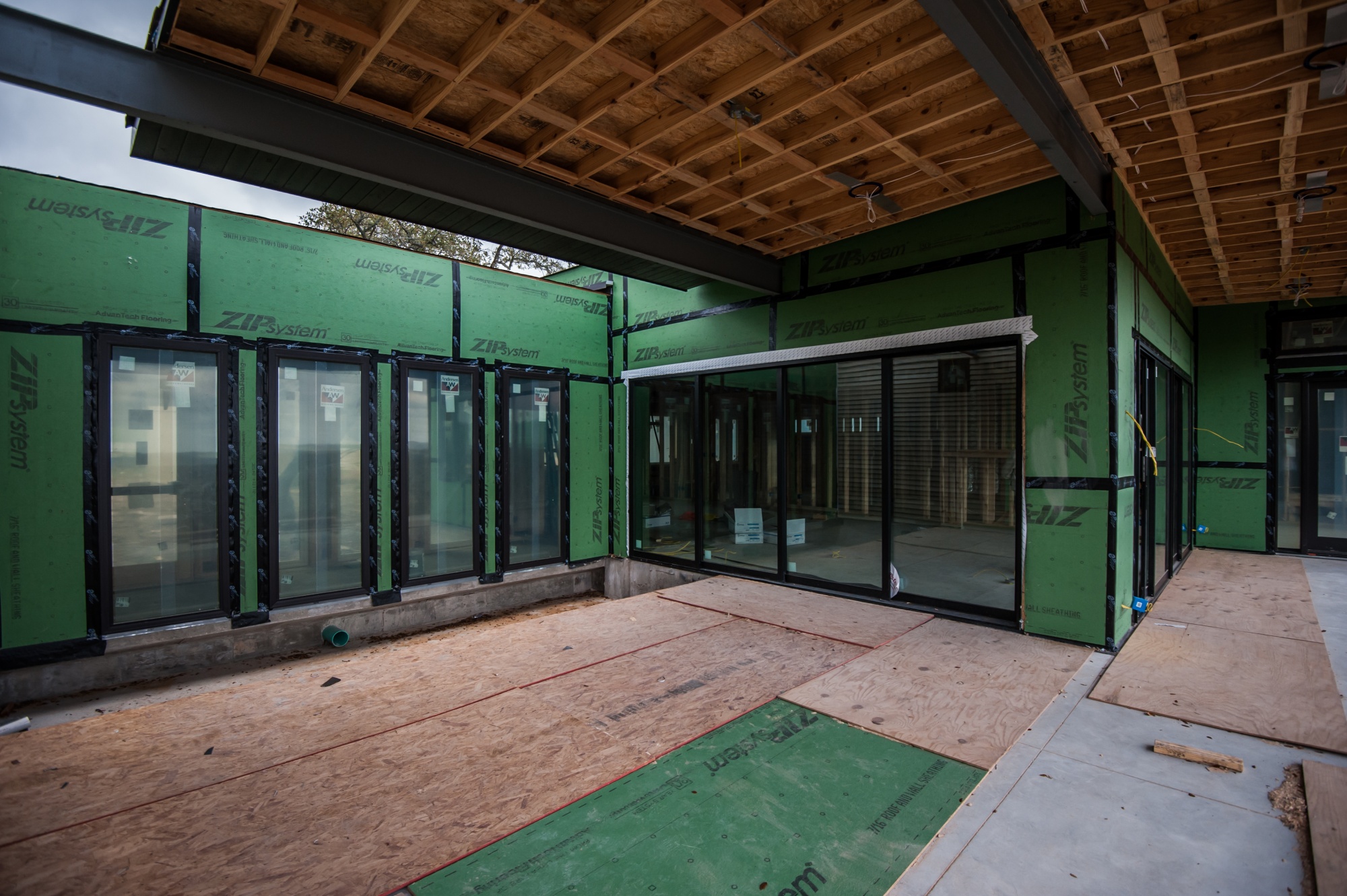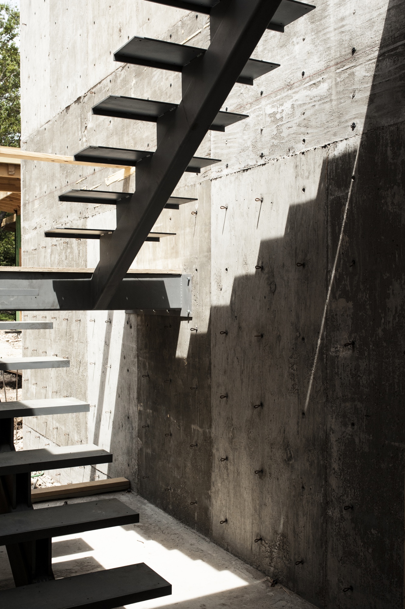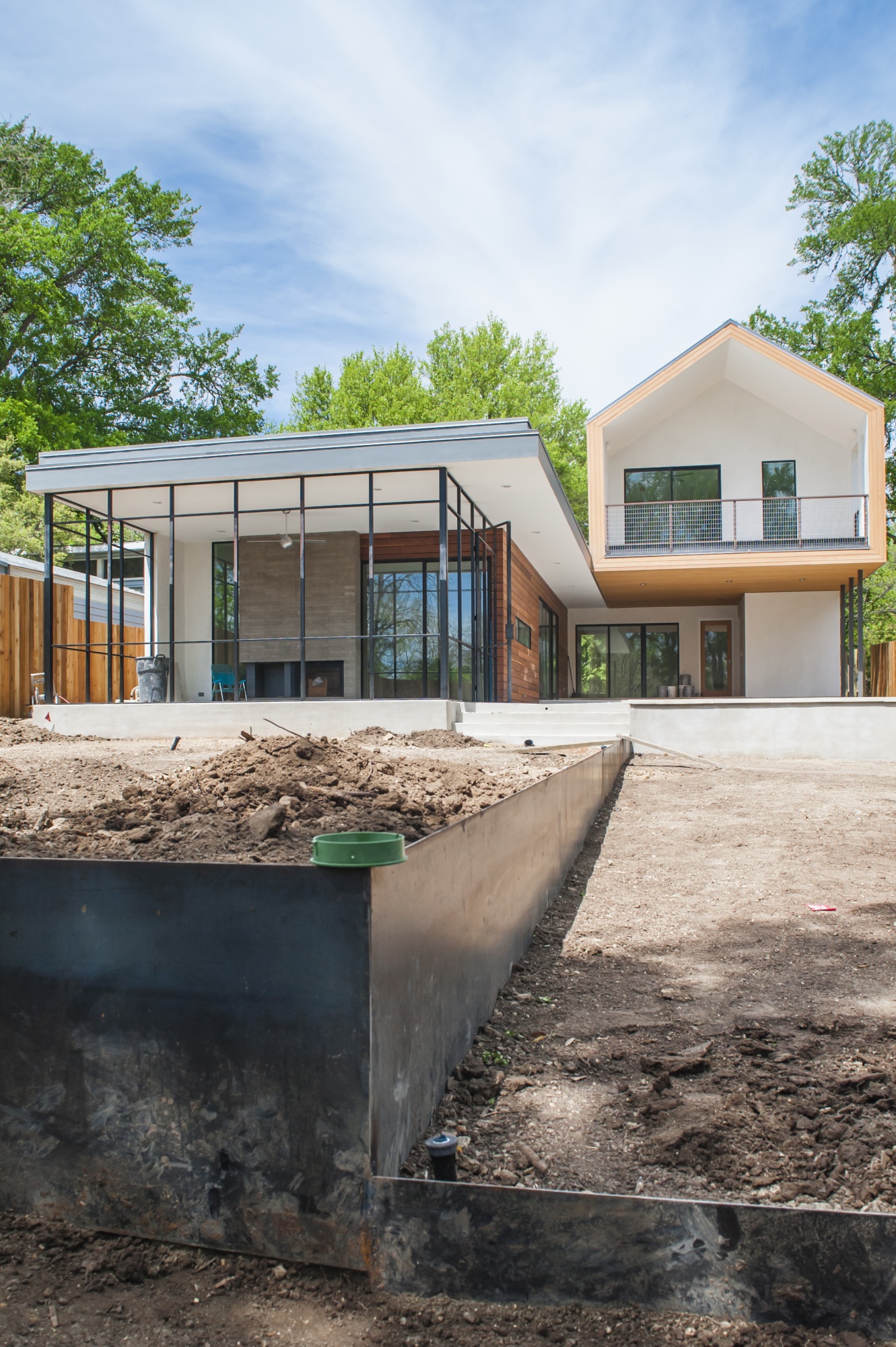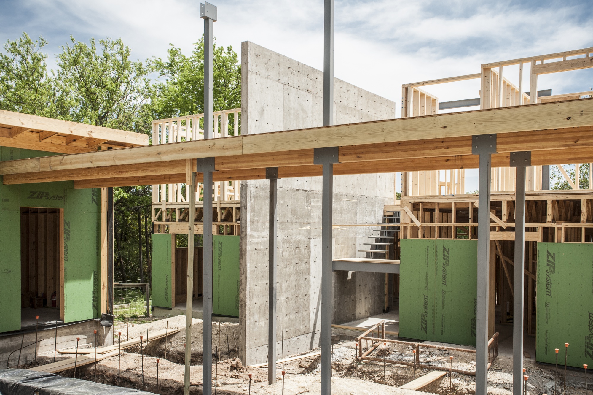 Our Sr. Project Manager, and 2014 Construction Manager of the Year, Matt Carswell is well on his way to making this new home a reality for our clients. This upside down house affords wonderful Lake Travis views from the second story living spaces, while also honoring the well established native oak trees on the property. It’s these trees and the positioning of the home which provide a sense of privacy even with floor to ceiling glass walls.