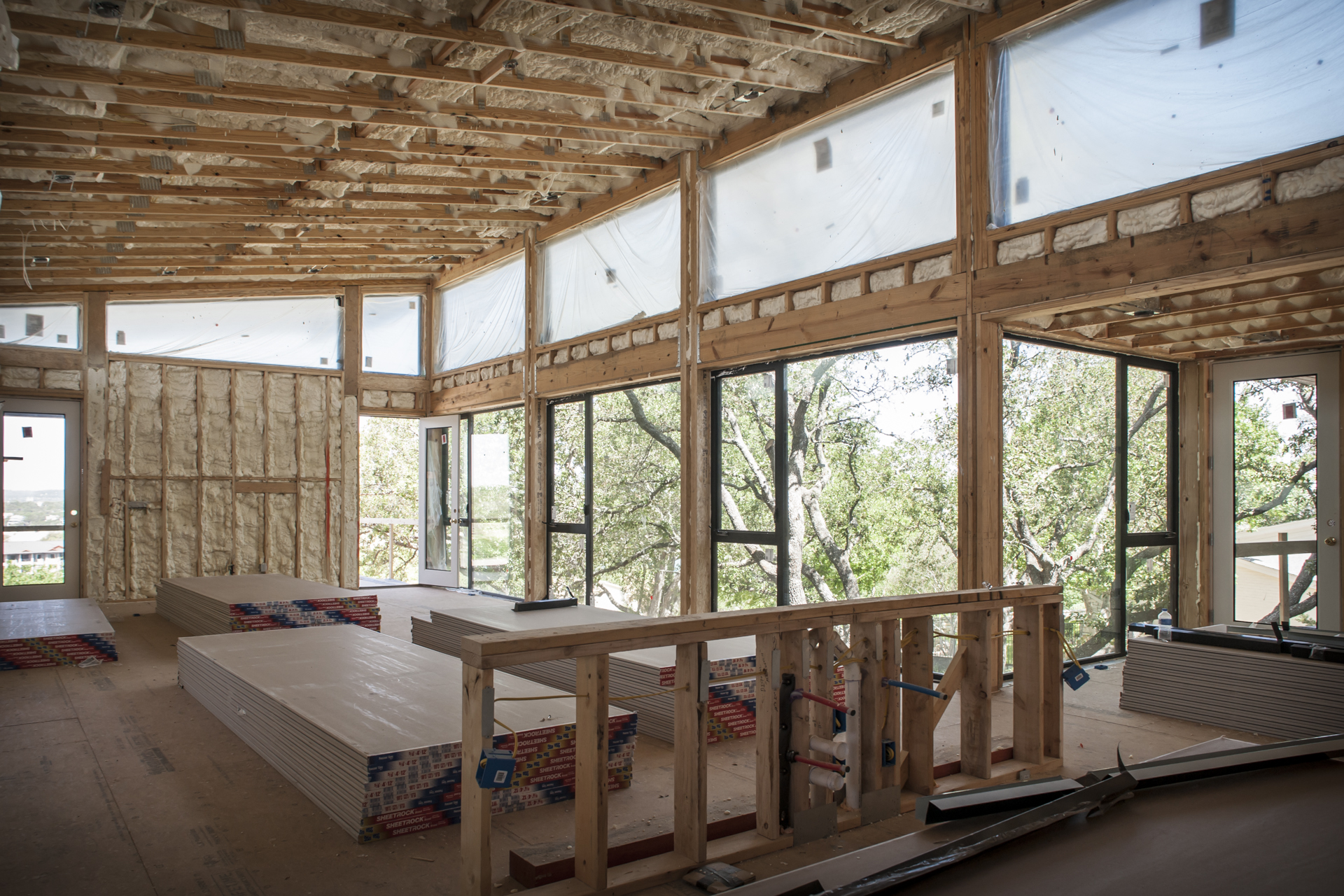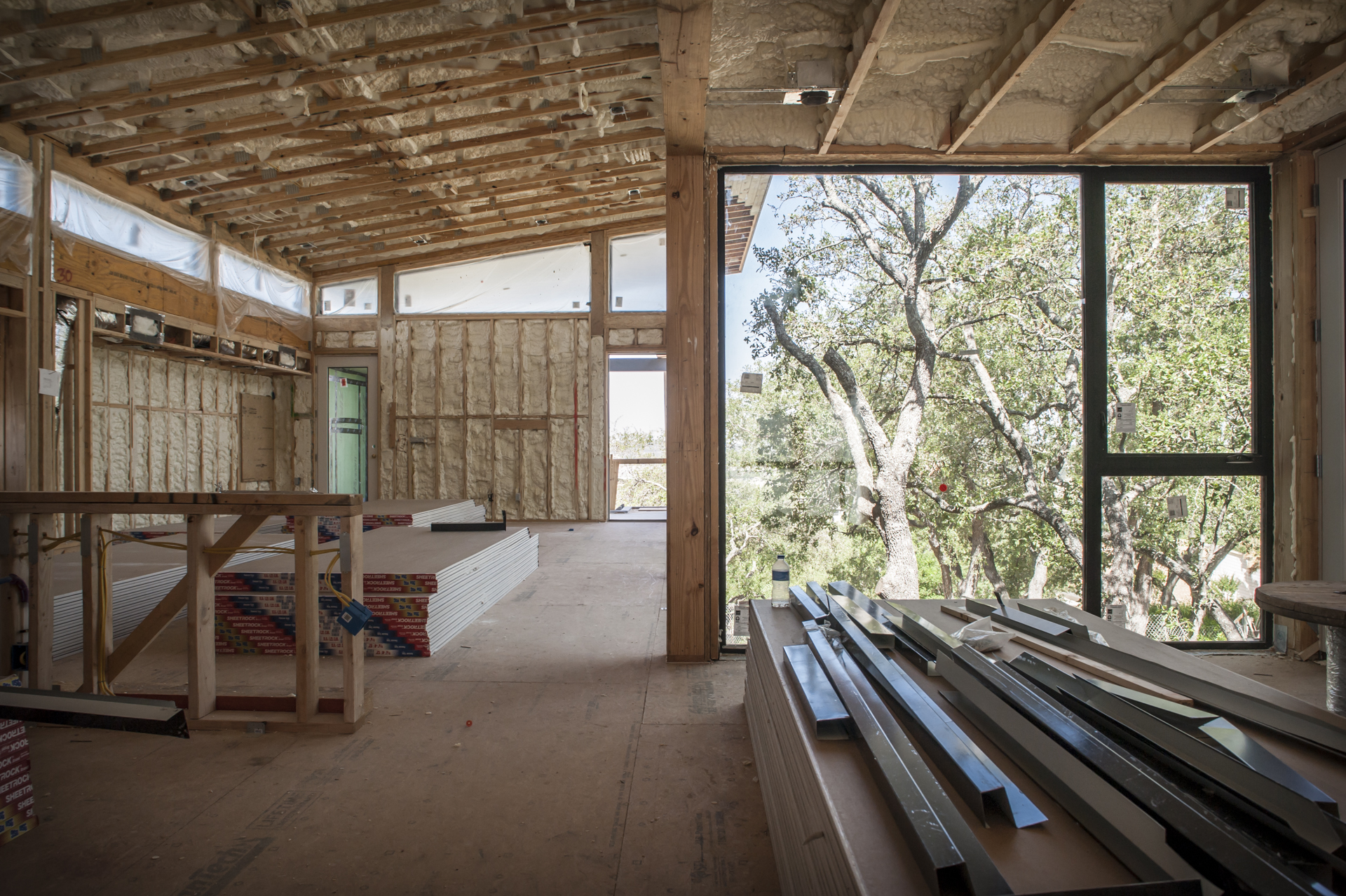 Our Sr. Project Manager, and 2014 Construction Manager of the Year, Matt Carswell is well on his way to making this new home a reality for our clients. This upside down house affords wonderful Lake Travis views from the second story living spaces, while also honoring the well established native oak trees on the property. It’s these trees and the positioning of the home which provide a sense of privacy even with floor to ceiling glass walls.